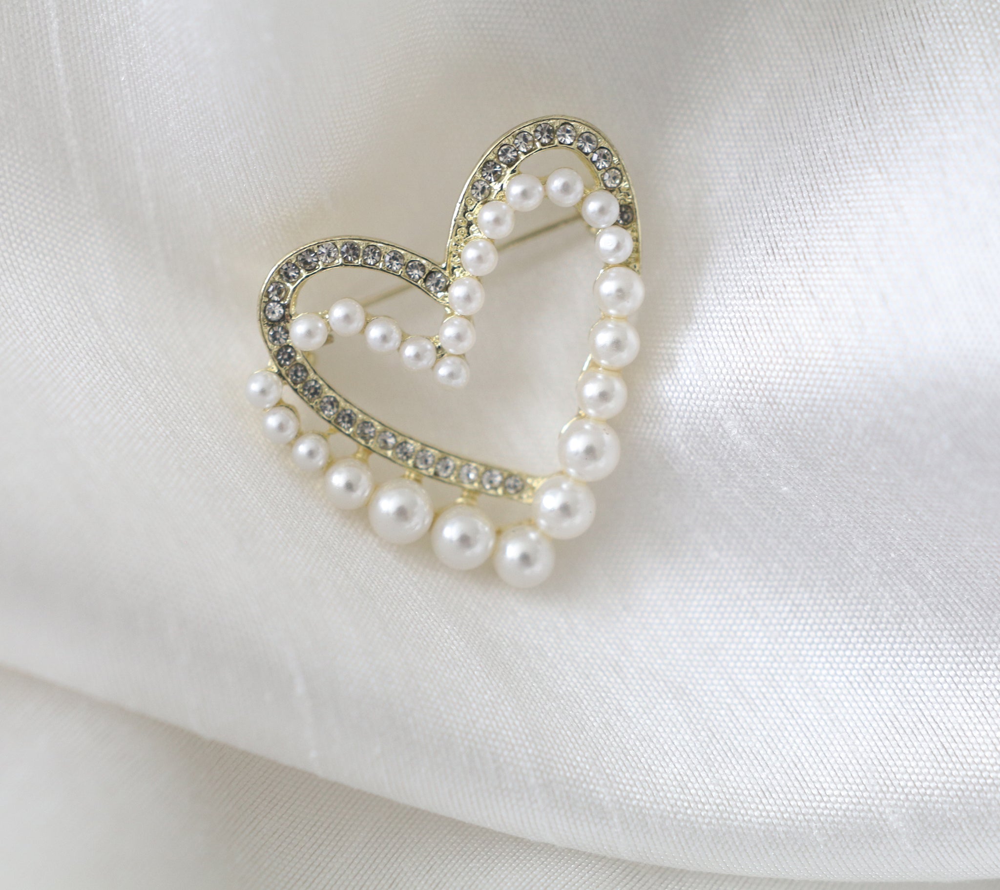Show your style and sophistication with the Pearl Heart Brooch Pin, a timeless accessory that blends romance and elegance. Designed with luminous faux pearls and sparkling rhinestones, this open heart brooch captures light beautifully and adds charm to any outfit.