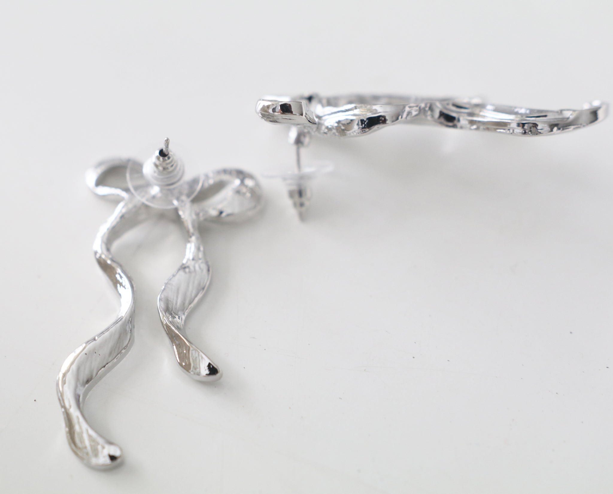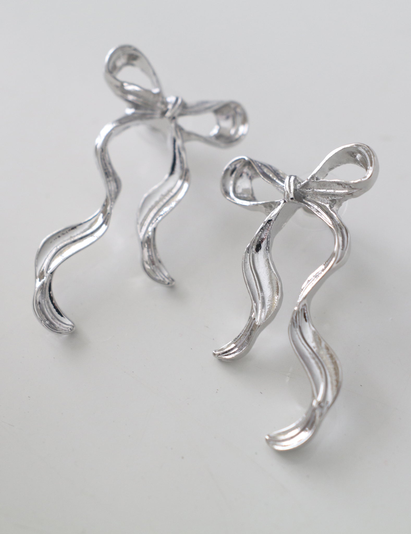 Delicate, feminine, and trending this holiday season the Ribbon Bow Drop Earrings bring a graceful sparkle to every festive moment. Each earring features a softly looped bow that flows into long, wavy ribbon tails, creating movement that catches the light beautifully. Designed to resemble a perfectly tied satin ribbon, they add a touch of elegance to every outfit from cozy knits to evening attire.